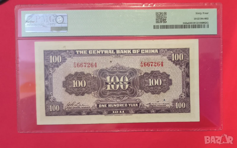Китай 100 юана 1941 година PMG 64, снимка 1 - Нумизматика и бонистика - 50769233 Китай 100 юана 1941 година PMG 64, снимка 2 - Нумизматика и бонистика - 50769233 1/2