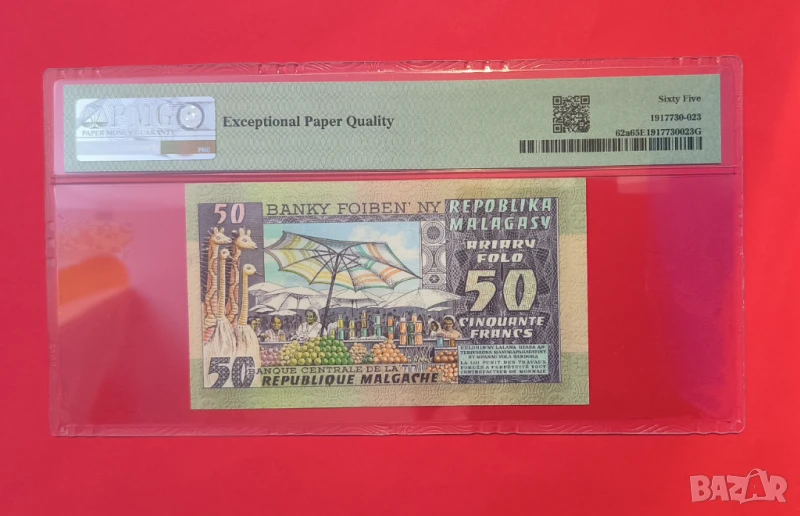 Мадагаскар 50 франка 1974 година PMG 65 → Обява 50769758