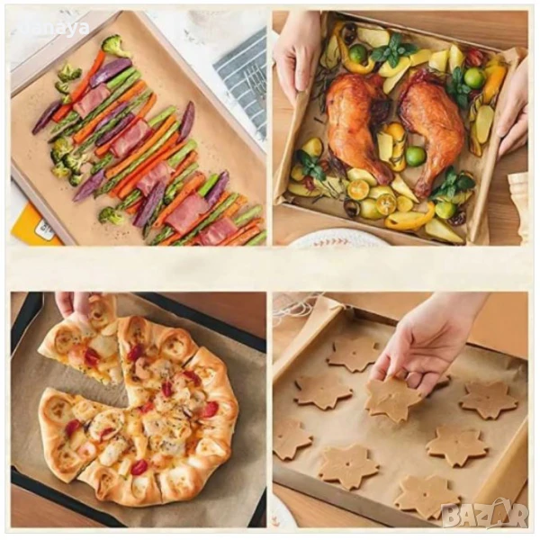 Благодарение на двустранното силиконово покритие, храната не залепва и не се налага използване на мазнина, което я прави чудесен избор за здравословно готвене. Лесна за изрязване и поставяне, тя е перфектна за печене на сладкиши, тестени изделия, месо, зеленчуци и много други.