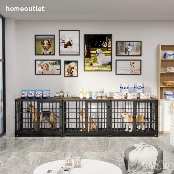 Нашата клетка за кучета надхвърля основната си функция, като служи и като шикозна стойка за телевизор, рафт за книги и дребни предмети, поставка за кучешка храна и други.