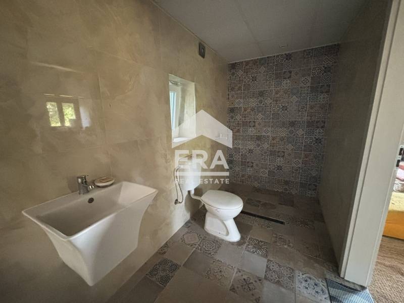 Първи етаж - кухня с преход към спалня, баня с тоалетна и преход към постройка с площ от 45 кв.м., предвидена за голяма и просторна трапезария с кухня
