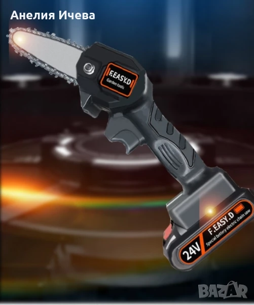 Мощност: 550 W;Тип захранване: презареждаща се акумулаторна литиева батерия;Номинално напрежение: 110-220V;Тегло: около 1,8 кг.;Тегло с опаковката: около 3,8 кг.;Скорост на веригата: 5М/S;Напрежение: 24V;Капацитет на батерията: 3000 mAh;Дължина на острието: около 6 инчаСкорост на веригата на триона: 18 метра в секунда;Моторно задвижване: безчетков двигател;Регулиране необходимата скорост на рязане;Ергономична неплъзгаща се дръжка.Комплекта вкл: 1 батерия