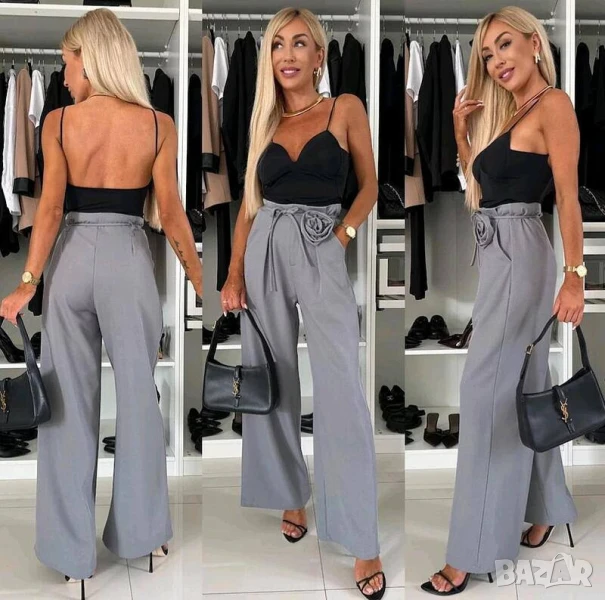 Дамски елегантен панталон с роза в Черно и Сиво → Обява 50770517