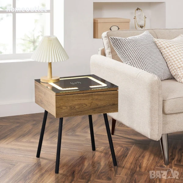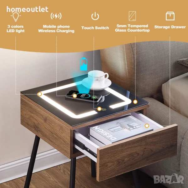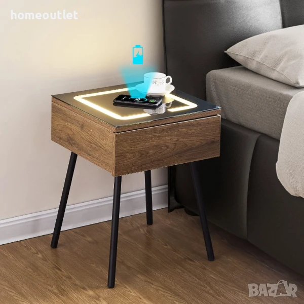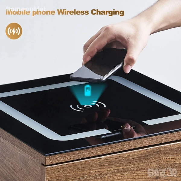 Шкафчето е оборудвано с разнообразни функции, като безжично зареждане, нощна лампа и място за съхранение, които отговарят на съвременния начин на живот.