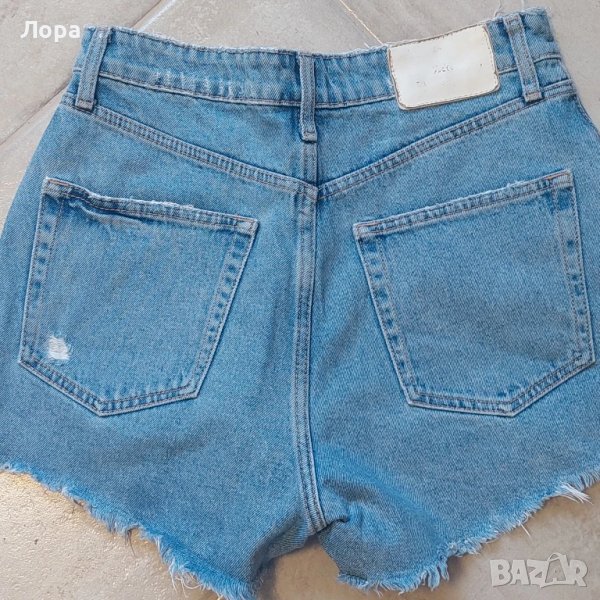 Дамски къси дънкови панталони ZARA. Ширина в талията едностранно 38 см. Ханш 50 см. Дължина от талията до долу 34 см.Нямат забележки.