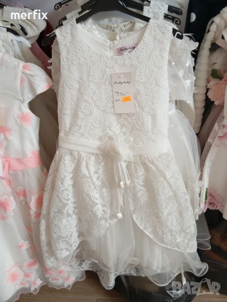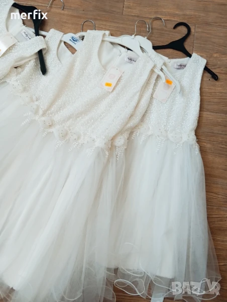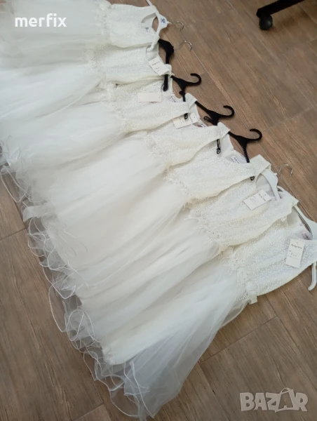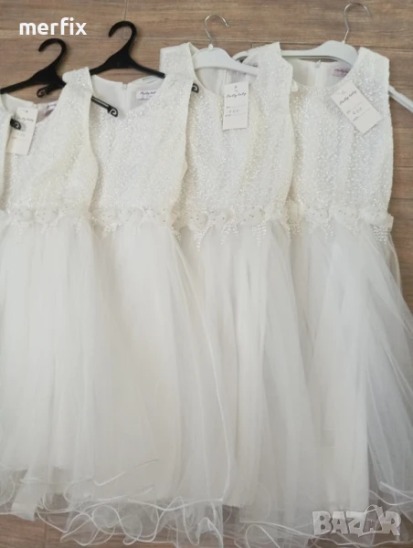 Продавам на едро нови официални рокли за повод. Размери от 6г, 10г, 12г, 14г, имам и размер за 8 г, но друг модел, като цвят пак е бяло. Цена на едро е по 20 лв, може и по отделно, цена на дребно е 50 лв. При интерес пишете ми на лично.