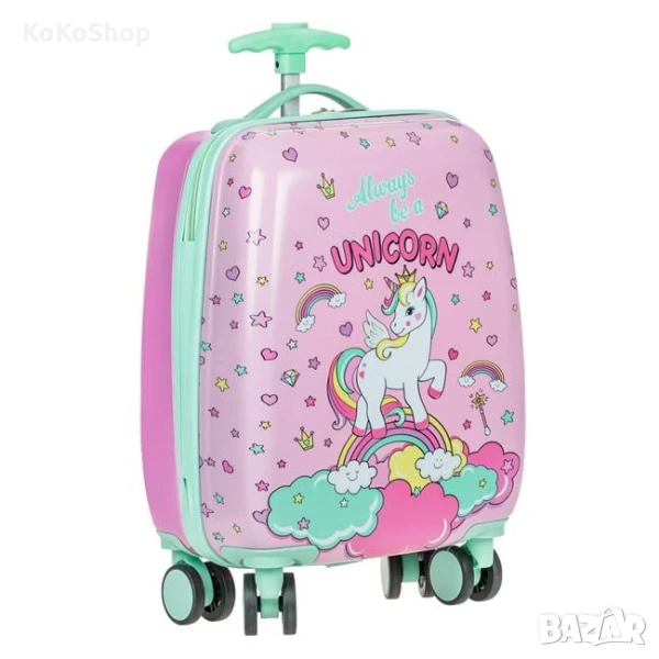 детски куфар с еднорог! Идеален за ваканции, пътувания и уикенди – стилен, лек и удобен.