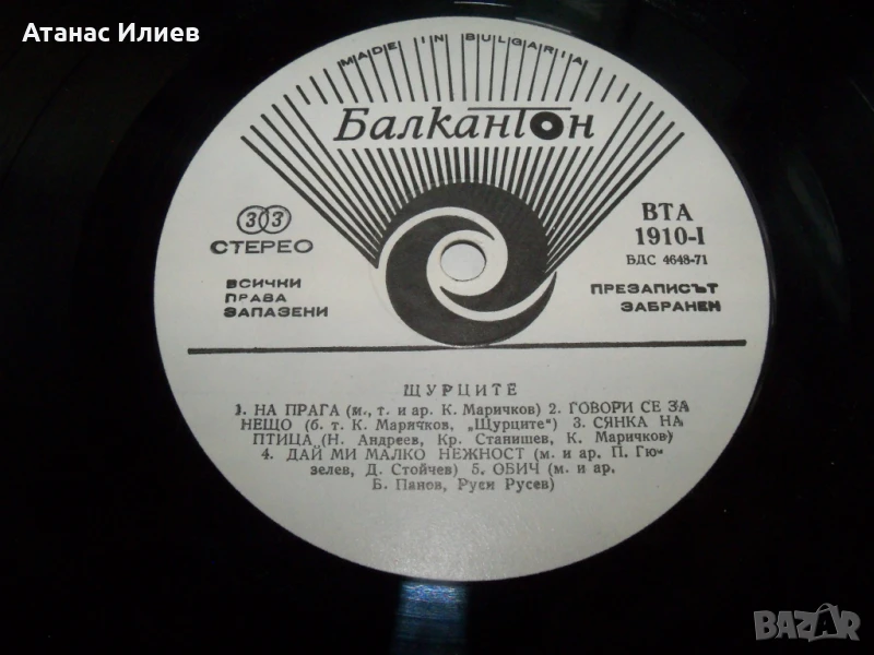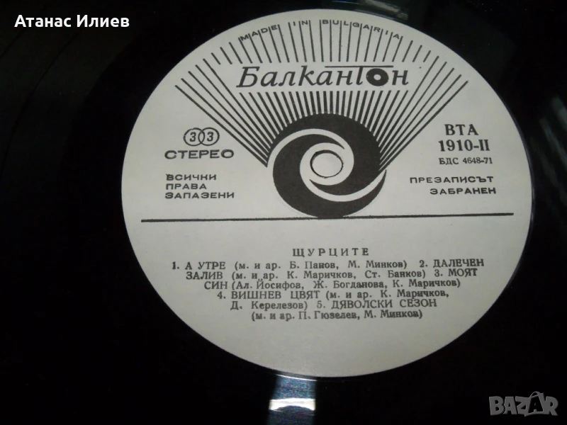 Щурците, ВТА 1910, 1976г. Плочата е прослушана и е в много-добро състояние. Обложката е разлепена.