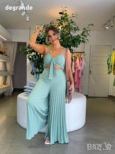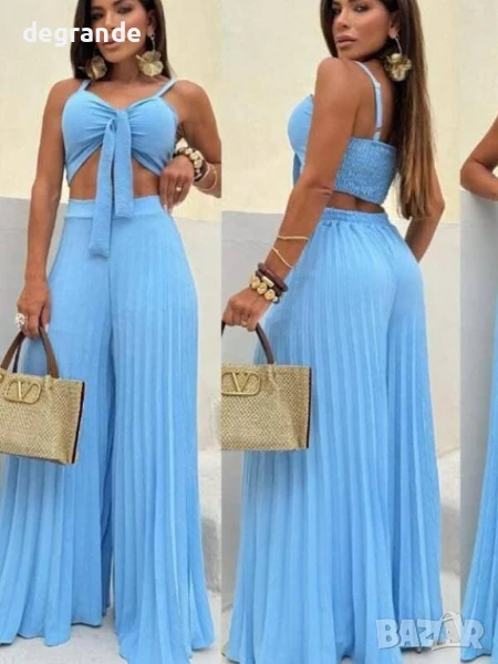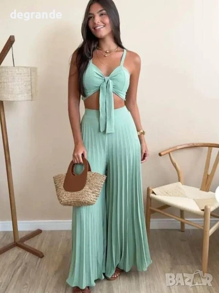 Дамски сет Топ с плисиран широк панталон/ Италианско производство/ → Обява 50772533