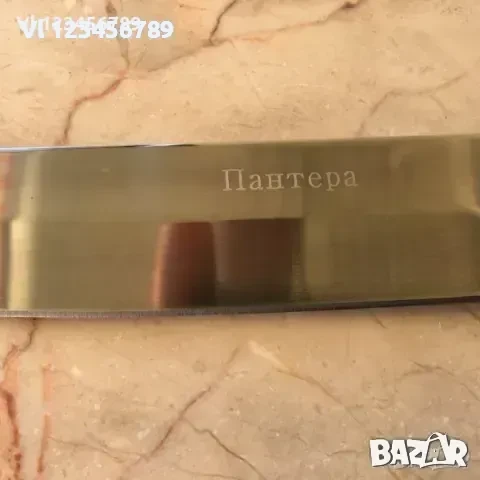 Руски гравиран ловен нож месингов гард,Пантера Ст 65х13 → Обява 50772878