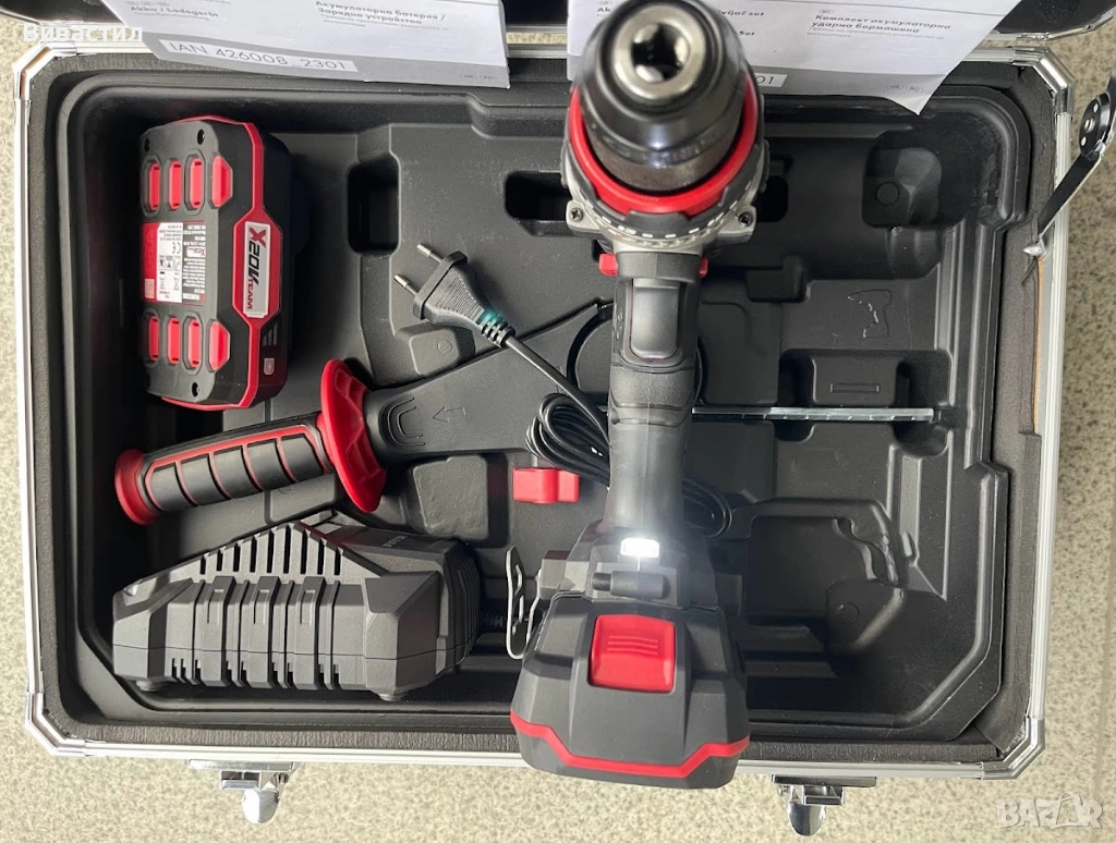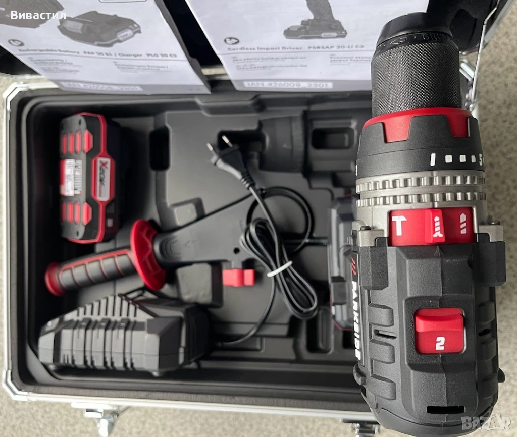 Parkside Performance Черен ударен Винтоверт Парксайд 150Nm с AL куфар с титаниеви аксесоари.Машината е нова внос отГермания продава се както в комплект така и всяко нещо по отделно.