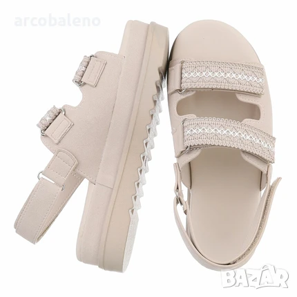 Открийте перфектния спътник за слънчеви дни с тези модерни сандали! Небрежният вид и прецизната изработка правят тези обувки идеалния избор за жени, които следят модата и ценят както стила, така и комфорта. Изработени от висококачествен, мек материал, тези сандали предлагат не само привлекателен външен вид, но и изключителен комфорт. Двете регулируеми каишки с фини тъкани детайли осигуряват сигурно прилягане, а подплатената подметка глези краката ви дори през дългите дни. Тези сандали са идеални за развлекателни дейности, посещения на плажа или спокойни разходки из града през топлите месеци. Независимо дали са за ежедневна употреба или за специални поводи, те се адаптират без усилие към вашия начин на живот. Пясъчно оцветената повърхност придава на обувките гъвкава елегантност, която лесно може да се комбинира с вашия гардероб. Идеални са за жени, които водят активен начин на живот, но не искат да жертват модата. Добавете завършек към лятната си визия с тези сандали и се наслаждавайте на всяка стъпка!
