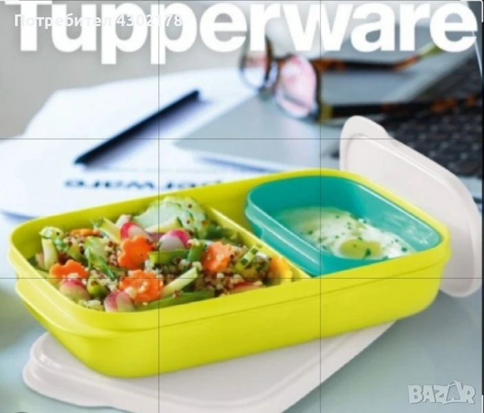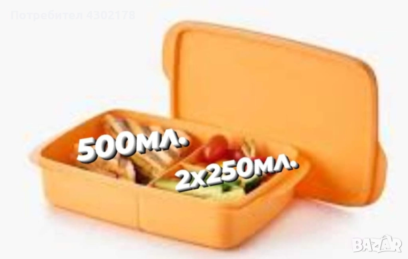 Кутията с разширение има две прегради и допълнителна малка кутия с вакумен капак за течна храна(таратор , леща)
