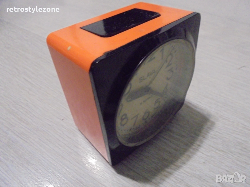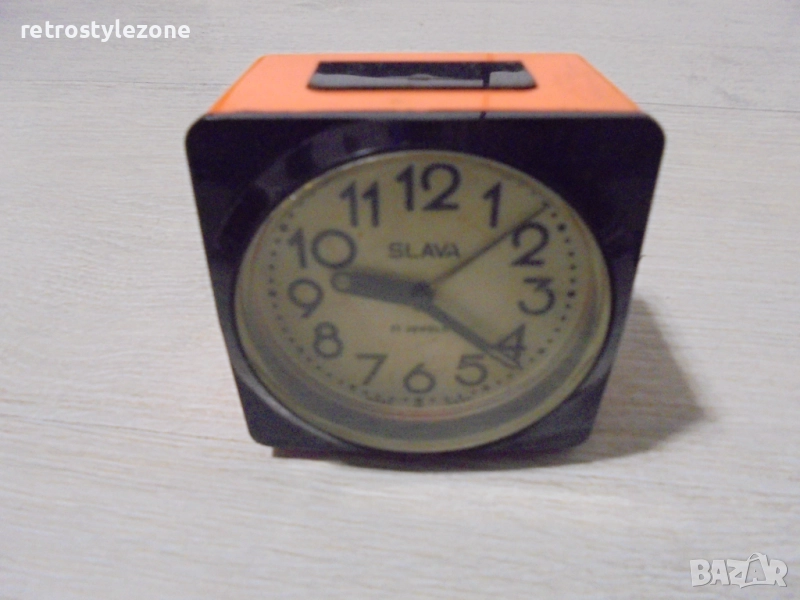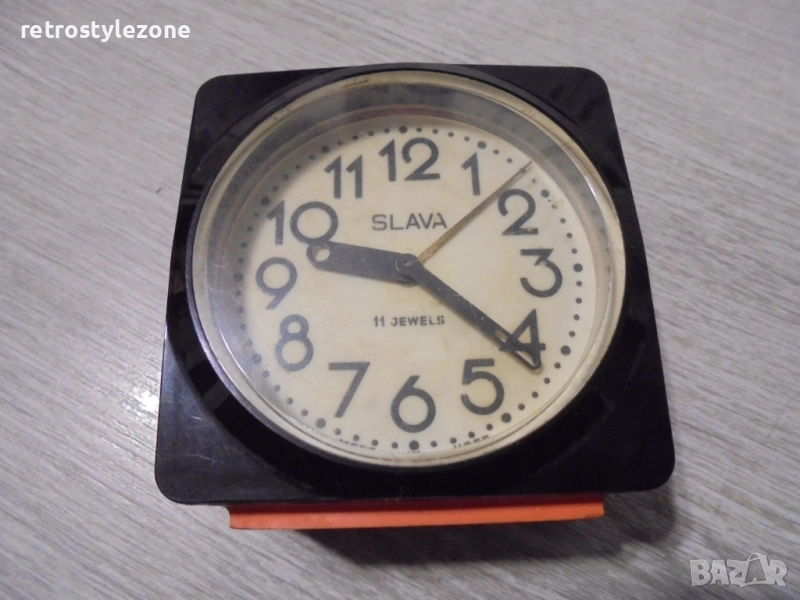 Автентичен стар руски настолен часовник SLAVA, произведен в СССР. Механичен модел с 11 рубина (11 jewels) – характерно за висококачествените механизми от онова време. Часовникът е напълно работещ, поддържа добро време и има отчетлив звън при навиване.