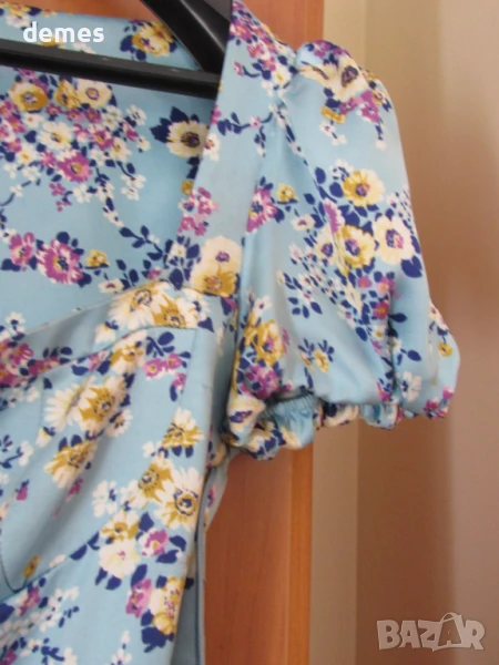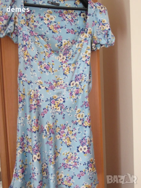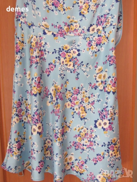 Много красива и удобна рокля в нежен син цвят корал и флорални детайли.