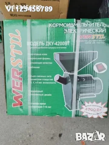 Мощна и качествена РУСКА моновазна фуражомелка с мощен електромотор 3 kW. С 4 мрежи за различно мелене в комплекта. С подсилени мелещи чукове и механизми удебелена конструкция.Бърз и незаменим Помощник за всяко едно стопанство професионално или от битов характер.