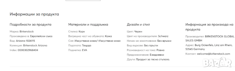 Производител и опаковчик (име и адрес) - Birkenstock Productions Sachsen GmbH, Gewerbering 8, 02828 Гьорлиц, ГЕРМАНИЯ
