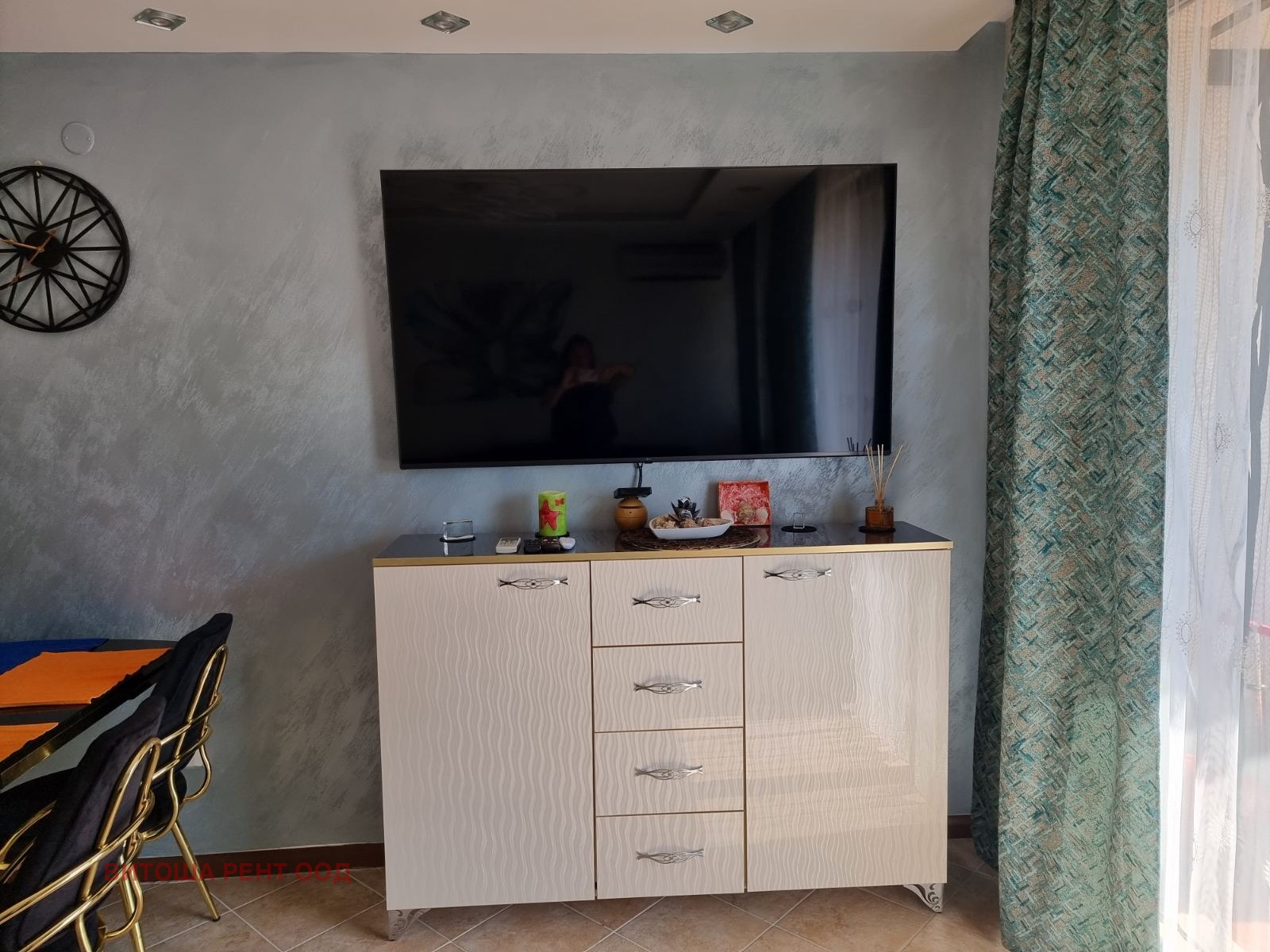 Уникален лукс вип апартамент в OAZIS REZORT & SPA, най-поддържаният затворен комплекс на българското черноморие на първа линия на морския бряг.Разполага със 4 басейна и 5 заведения на плажа ,както и бар на два от басейните.Ако искате релаксираща почивка под звука на истинска природа това е вашият правилен избор.Апартамента разполага със чисто ново обзавеждане след ремонт е и разполага с мощен бойлер около 45мин топла вода достатъчен за цялото семейство.Смарт 4к телевизори 65' и 43',пералня Миеле,2 супер инверторни климатика General,вградена миялна,МДФ Гланц обзавеждане.лед осветление,дущкабина 90 на 120см.3000лв годишна поддръжка.бартер за парцел за строителство около или в София.Може и с доплащане от наша страна.