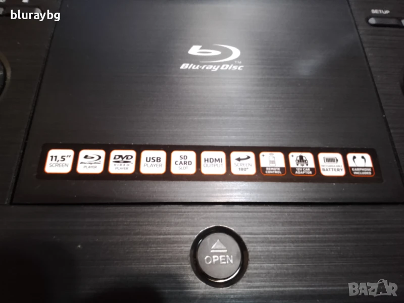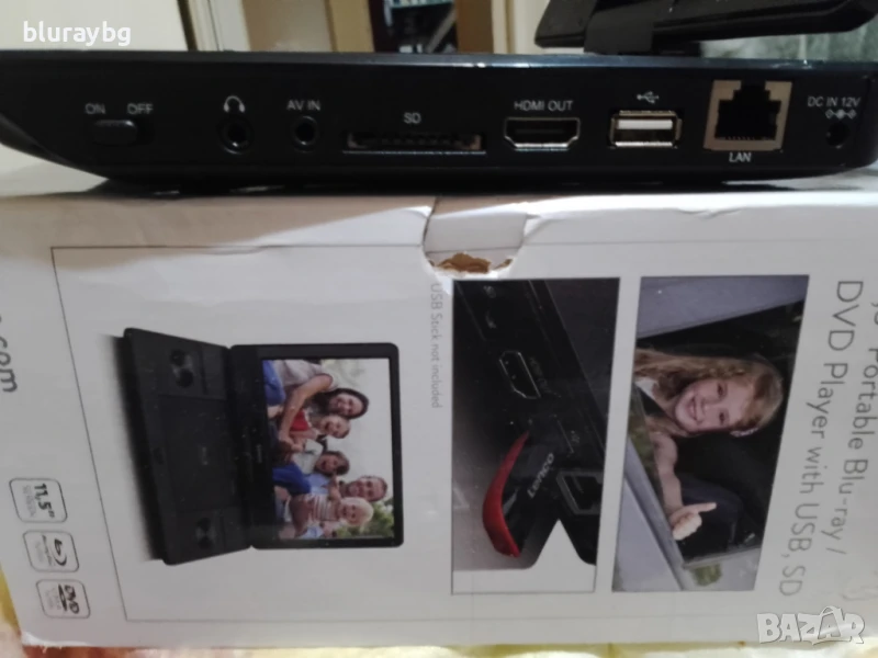 На кратко.Проблеми с монитора,премигана и се получи това на една от снимките.През HDMI изхода всичко е ОК. Вижда се на една от снимките.Даван е в сервиз,казаха че е от платка,монитора е здрав все още с лепенката.Четете абсолютно всичко от CD ,DVD,BD оригинални и пиратски /записани/ дискове.Пълен комплект кабели.Към него давам 2 блу рей филма и 2 двд филма.Има вход за задна камера или друг източник,SD-четеца и USB-то работят без проблем.Екрана на монитора е 11.5 ина т.е 29,8 см.Има добър звук.Екрана се върти на 180 градуса.Вградената батерия държи между 3-5 часа зависи какво ползвате.Отделно за 80 лева могат да се закупят дисковте на последните снимки.За още подробности тук: