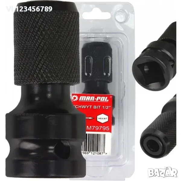 Висококачествен адаптер от Mar-Pol, изработен от закалена въглеродна стомана. Подходящ е за употреба с ударни инструменти.