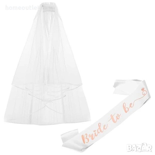 1 бр. лента от лъскава материя в бял цвят с надпис “Bride to be”;