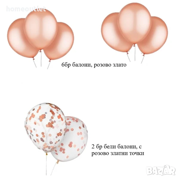 6 бр. латексови балони в цвят розово злато;