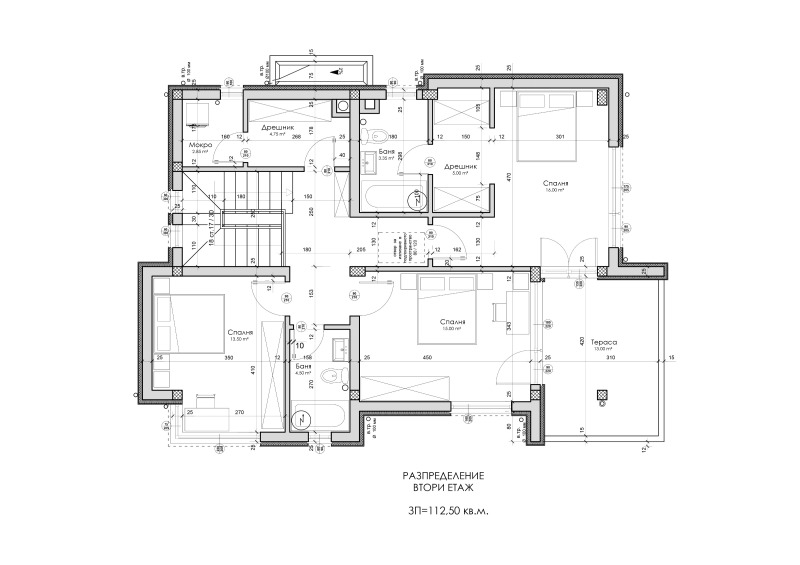 -Две допълнителни спални с обща баня и тоалетна,тераса