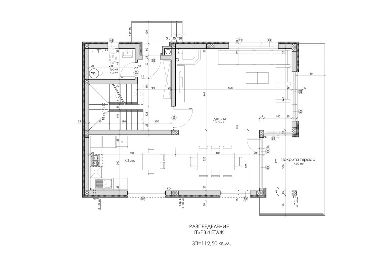 -Просторна дневна с трапезария и кухня
