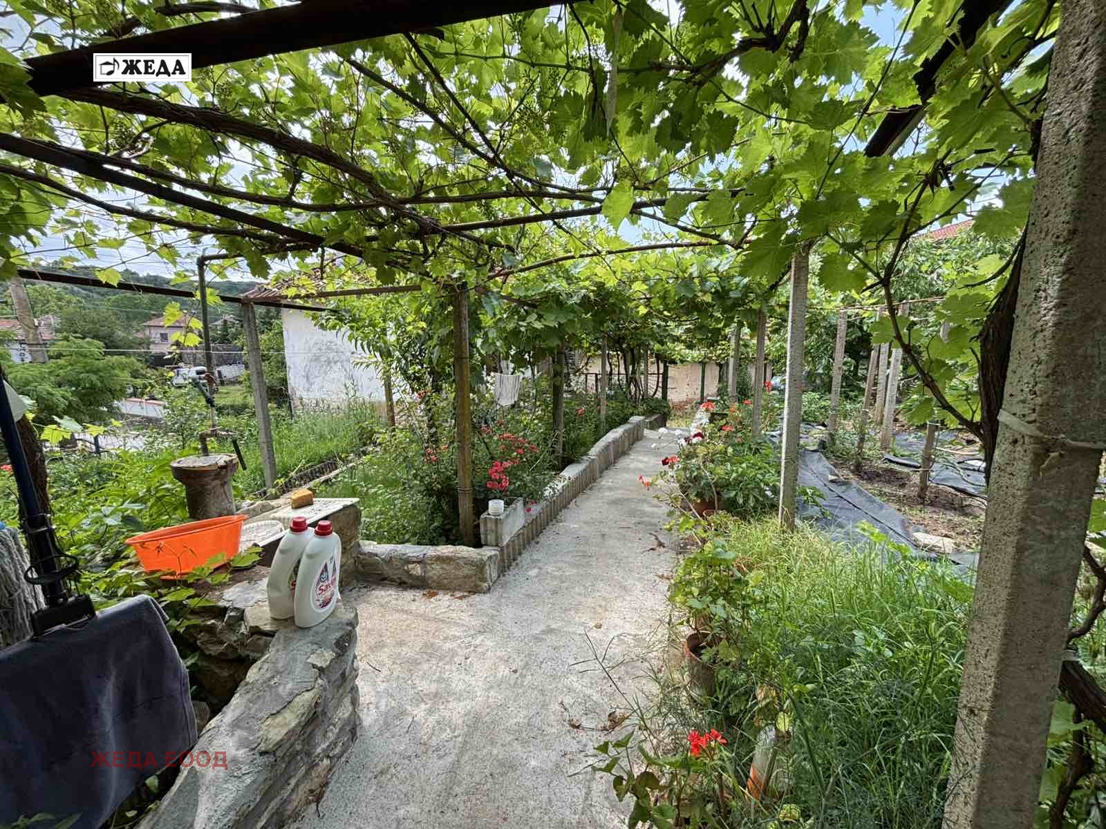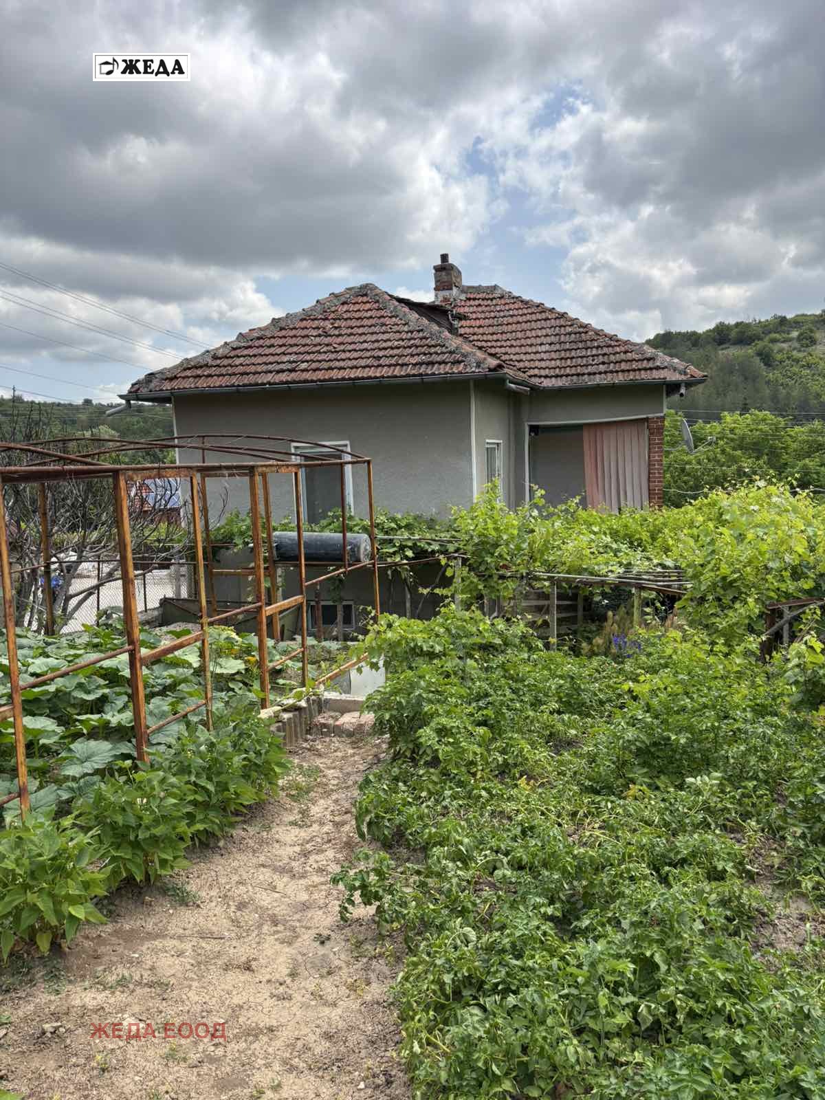 Масивна двуетажна къща с площ от 80 кв.м. и три стопански сгради и гараж. Къщата се състои от кухненски бокс, трапезария, баня с тоалетна и килер на първия етаж. Две спални /ремонтирани/ и една не обновена стая. Обновените стаи са с ламинат и дограма. В банята има бойлер и инсталация за слънчева вода, поливна инсталация за двора, собствена аларма към къщата и електрическа врата с подход към двора и гаража. Продава се с обзавеждането. Двора е терасиран с южно изложение и панорамна гледка. За повече информация и огледи на посочения телефон.