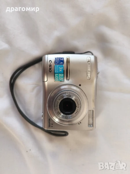 продавам компактен цифров фотоапарат, работи, OLYMPUS C-510 7,1 MEGAPIXEL, работи с две батерии АА по 1, 5 v, имам още много други фотоапарати, камери, обективи, чанти, светкавици, батерии, зарядни устройства, касети, филтри, ремъци, ленти, при закупуване на повече неща отстъпка