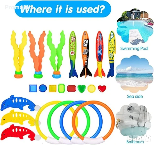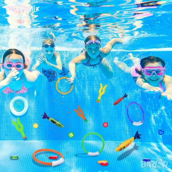 Децата могат да се гмуркат и да изваждат играчките от дъното на басейна, като упражняват и подобряват уменията си за гмуркане по забавен начин.