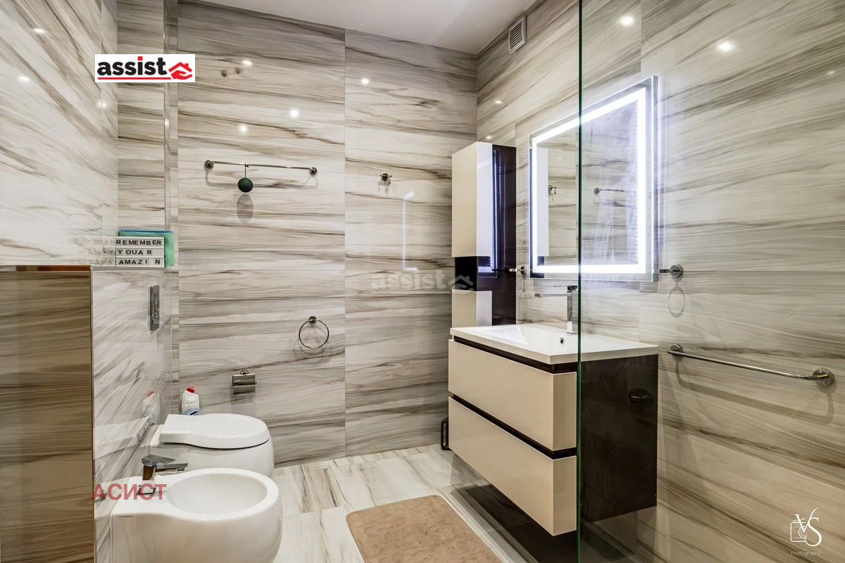 - дневна с кухненски бокс, две самостоятелни спални, една от които е със собствена баня с тоалетна и дрешник, отделно втора баня с тоалетна, отделно трета тоалетна, коридор и страхотна тераса.