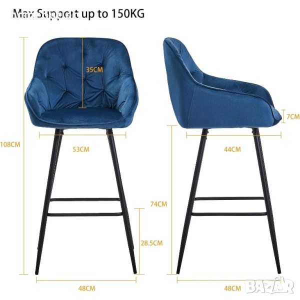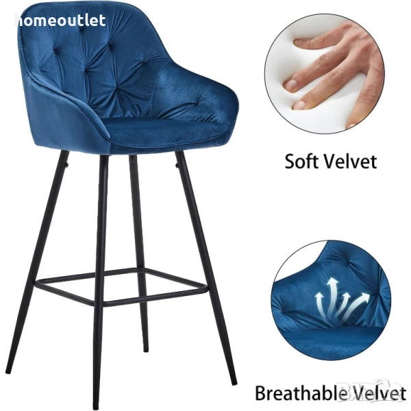 Интересен елемент от представения бар стол е металната рамка, поставена между четирите крака, върху която можете свободно да поставите краката си, докато седите