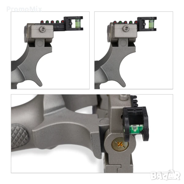 нивелир и прицелни точки, които улесняват прицелването и осигуряват прецизна стрелба от всеки ъгъл.