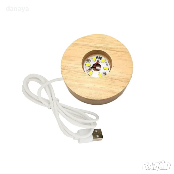 Стабилната дървената LED основа добавя елегантност и топлина.