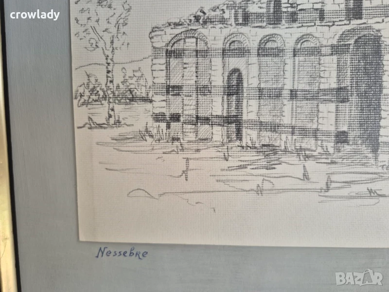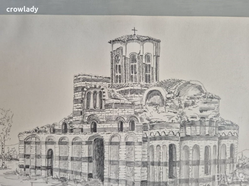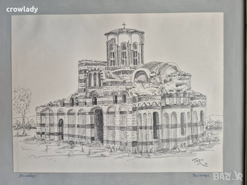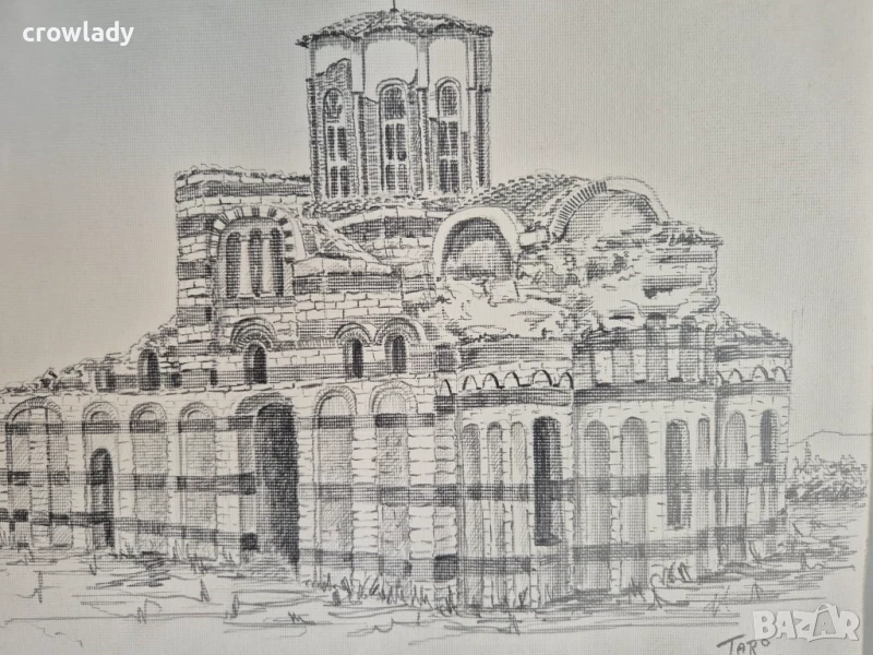 Наименование: Църквата Несебър 81г. майсторска прецизна рисунка молив в/у кадастрон