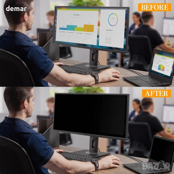 Този 24-инчов протектор за екран с антирефлексно покритие намалява отблясъците, UV лъчите и вредната синя светлина, като същевременно запазва ясни визуални ефекти с матирано антирефлексно покритие. Той осигурява устойчивост на надраскване, висока издръжливост и гарантира поверителност, като затъмнява екрана под ъгли от 30°. Идеален за употреба в обществени или открити среди, като офиси, кафенета, летища и влакове, той съчетава визуален комфорт с физическа защита на екрана.