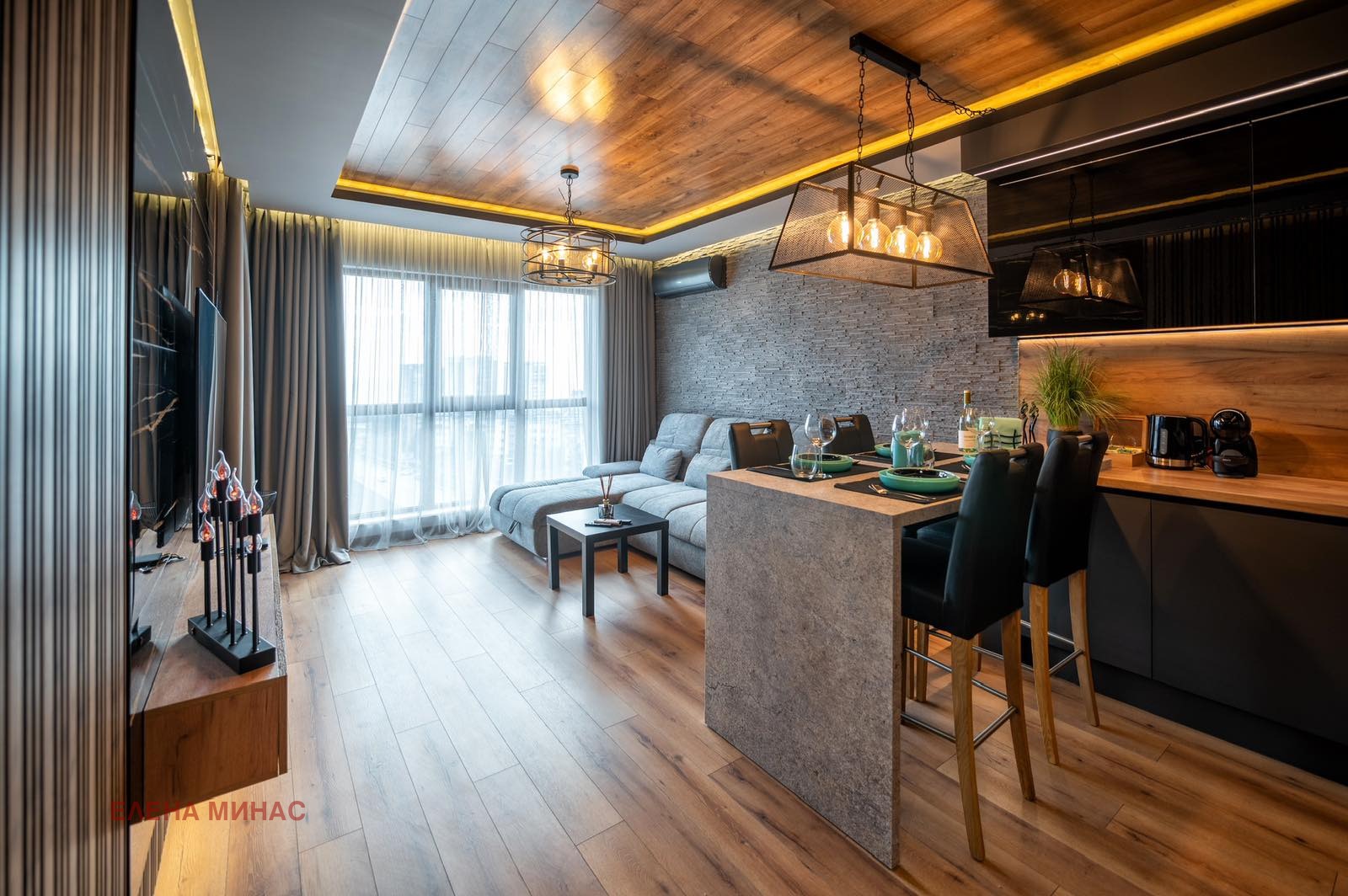 Имоти ЕЛЕНА МИНАС отдава под наем ЛУКСОЗЕН ДВУСТАЕН АПАРТАМЕНТ с ЧУДЕСНА МОРСКА ПАНОРАМА в ЕМБЛЕМАТИЧНА сграда в най-търсеният квартал за живеене кв. БРИЗ. Състои се от входно антре, дневен тракт с кухня, спалня, баня с тоалет и обща тераса към двете стаи. Жилището е СТИЛНО и ДИЗАЙНЕРСКИ ОБЗАВЕДЕНО и ОБОРУДВАНО с ВИСОК клас електро уреди. В наемната цена е включено ПАРКОМЯСТО.