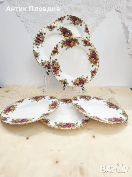 Шест броя чинии от прочутата серия Old Country Roses на английската марка Royal Albert. Изработени от фин костен порцелан, всяка чиния е украсена с богати цветни мотиви от рози в класически стил и златен кант по ръба. Идеални за сервиране на предястие, закуска или обяд, тези чинии съчетават елегантност и традиция, като носят неподвластен на времето английски чар.