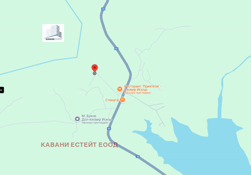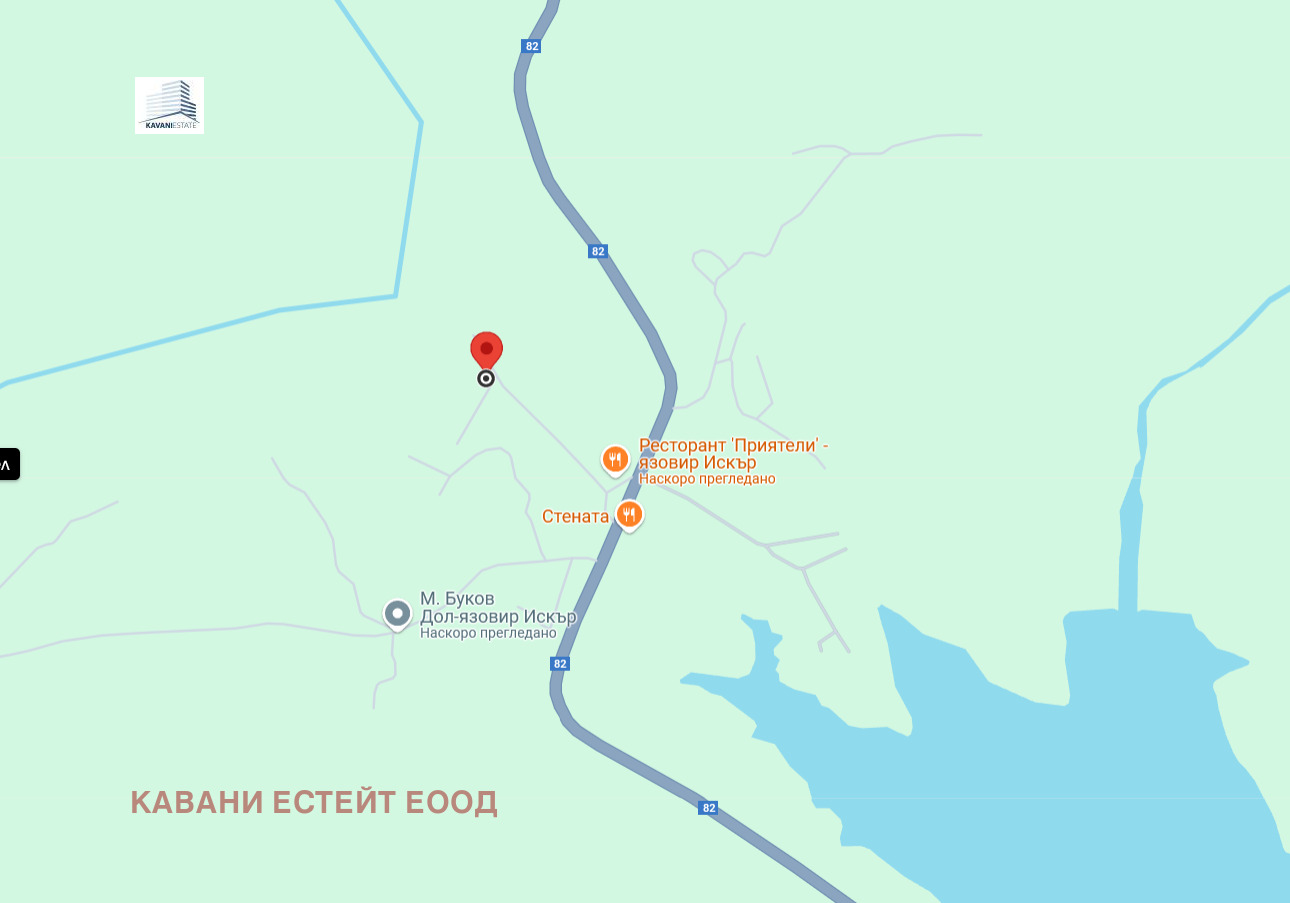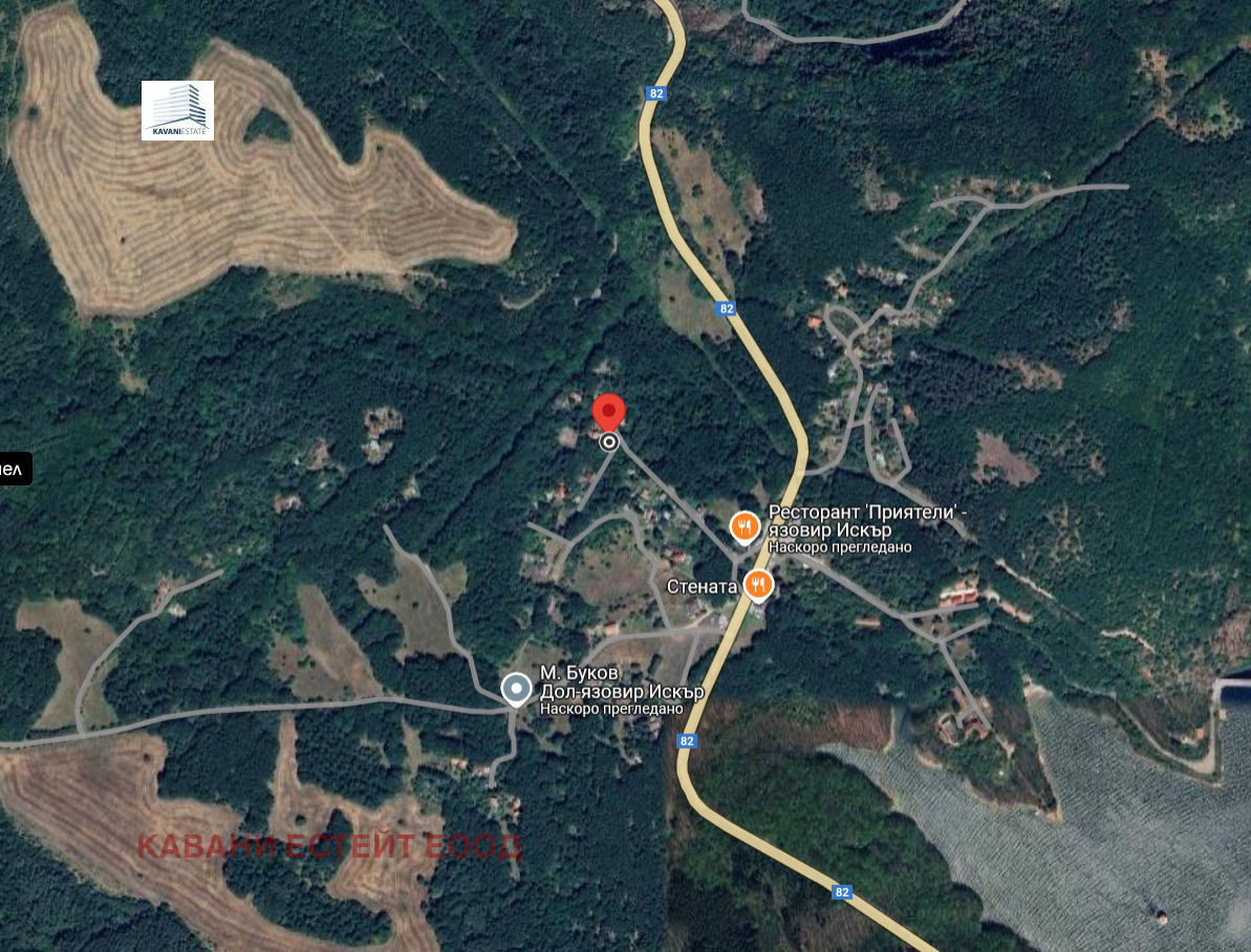 Продава се поземлен имот с площ 514 кв.м, разположен във вилна зона Буков дол, в близост до язовир Искър. Имотът е ъглов и попада в зона Жв с параметри на застрояване: плътност 20%, КИНТ 0.6 и максимална кота корниз 7 метра.