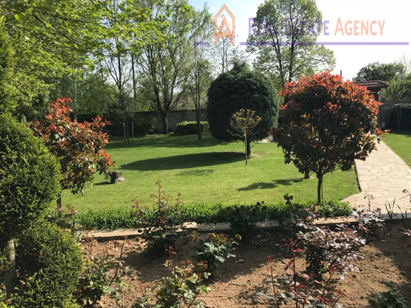 Дворът е равен и е с площ от 3000 кв.м, като 2000 кв.м от тях са оградени с масивна ограда и са оформени в красива, озеленена градина, на която е осигурена професионална поддръжка. Има ефектно нощно, градинско осветление, автоматична поливна система, дренажна и хидрофорна системи. Има генератор за ток, алтернативно решение за допълнителна сигурност. Имотът се охранява със СОТ.