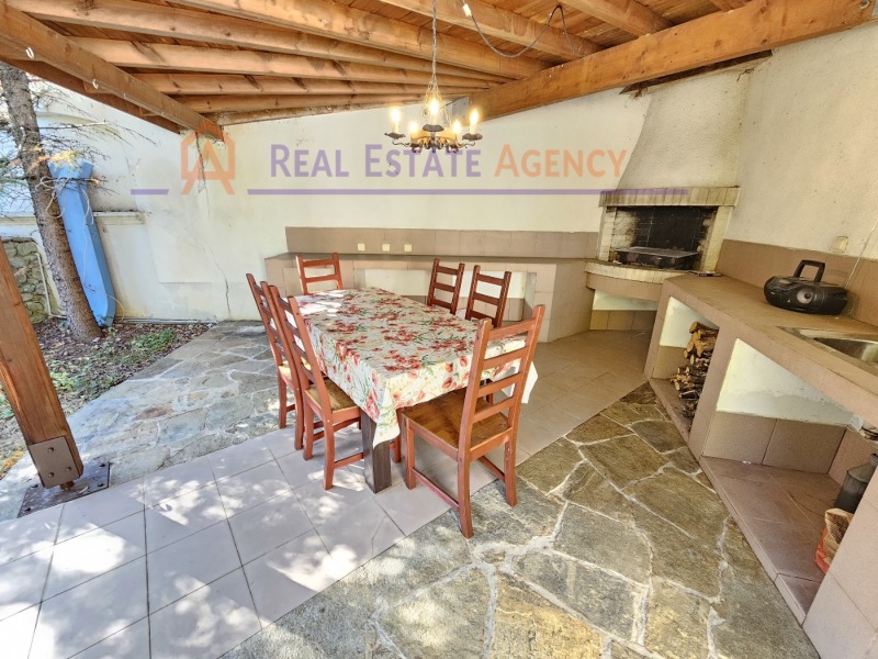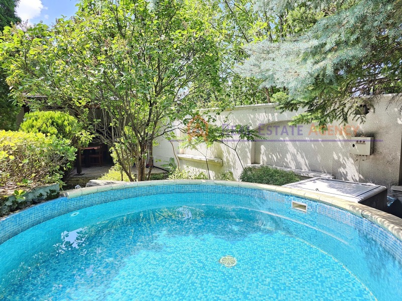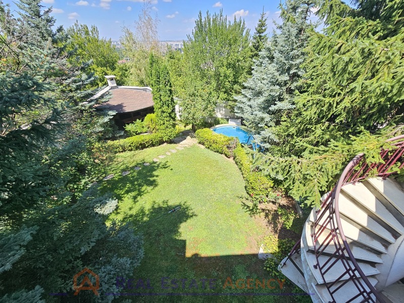 Предлагам на Вашето внимание голяма къща в кв. Бояна със сауна, външно барбекю, две отделни изолирани дворни пространства, четири отделни камини, зала за игри и басейн с детска пързалка.