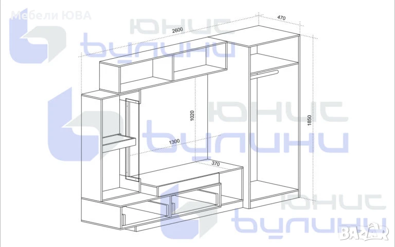 Място за телевизор: ш/в/д 1300/1020/370 мм