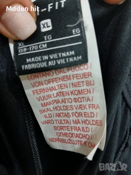 Произведено във Виетнам. 100% полиетер. Емблемата е бродирана. Два странични джоба с ципове. Долу на крачолите също има страничн ципове. Моделът е със стеснени в долната част крачоли. От вътре на талията е с връзки.