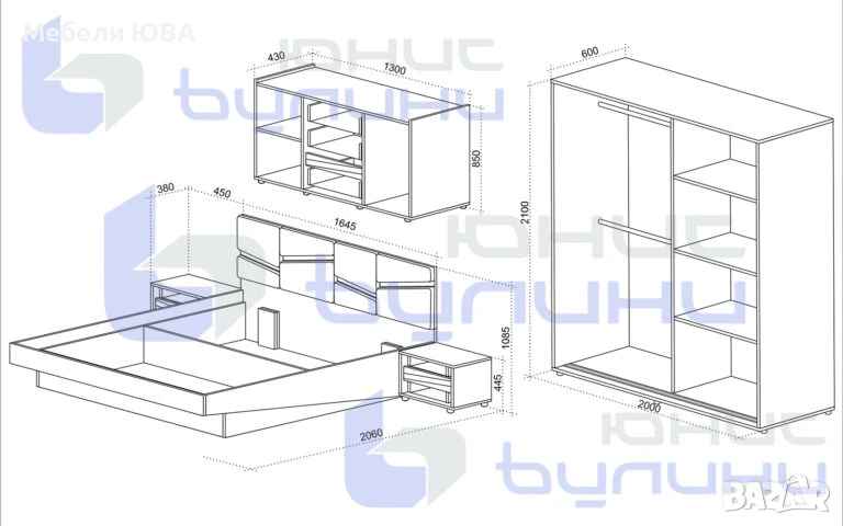 Спален комплект MOBILI включва: