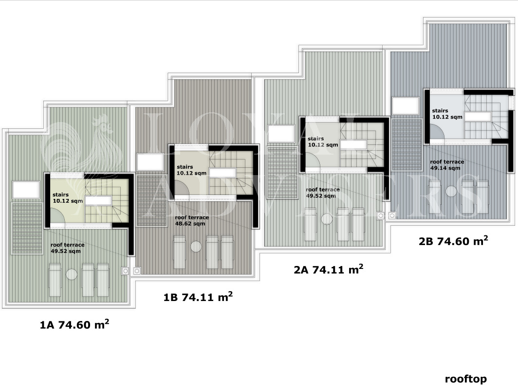 Къщите са с разгъната застроена площ от 337.28 кв. м, от които 74.11 кв. м представляват използваем покрив.