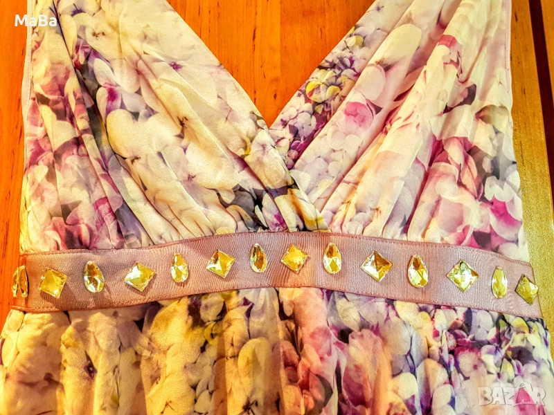 Женствена, феерична, с кристали на талията, изключително нежни пастелни цветове. Състав: 100% Полиестер; подплата: 97% Полиестер, 3% Еластан. Лично предаване в София.