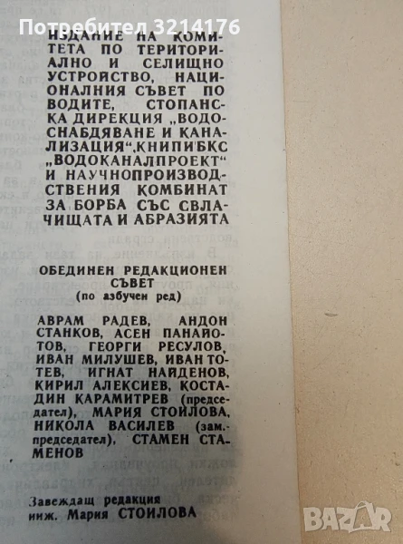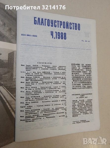 Благоустройство. Ч, 1988 - ред. Мария Стоилова; Аврам Радев, Ангел Николов, Валентин Райков, Велчо Велчев, Васил Нунев, Петър Ахчийски, Илия Кузманов, Петър Цивнев, Сергей Алвас, Кольо Краевски, Евгения Рупова 83лв.