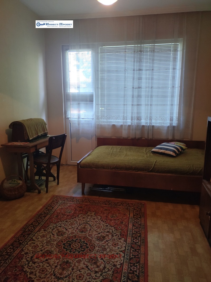 Кантора 'Инвест-Проект' предлага за продажба това просторно жилище със ЗП 113 кв.м., без общи части и тераси,състоящо се от коридор, дневна /хол/,трапезария с кухненски бокс, като като между дневната и трапезарията има вграден шкаф, което дава възможност, след премахването му, тези стаи да се обединят за повече простор и комфорт; две спални, отделни баня и тоалетна,които след ремонт могат да бъдат обособени като две бани с две тоалетни;има и вграден гардероб,който може да бъде обособен като гардеробно помещение към едната спалня. Жилището е с две тераси,като от към хола и дневната е голяма, югоизточна и с гледка към планината, втора тераса е северна, по малка и с излаз от едната спалня.Състояние- за основен ремонт.