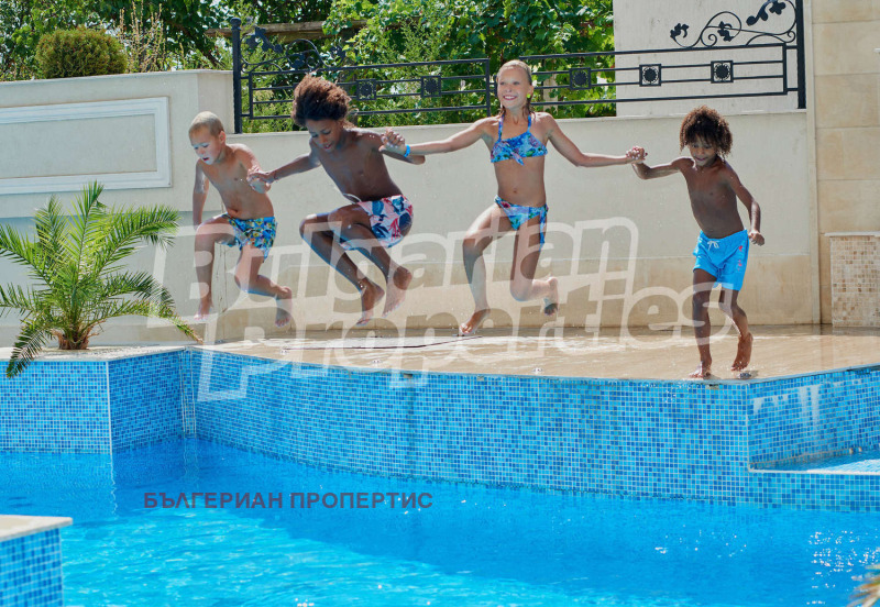 Открит басейн пред комплекса с изглед към морето и специална секция за деца